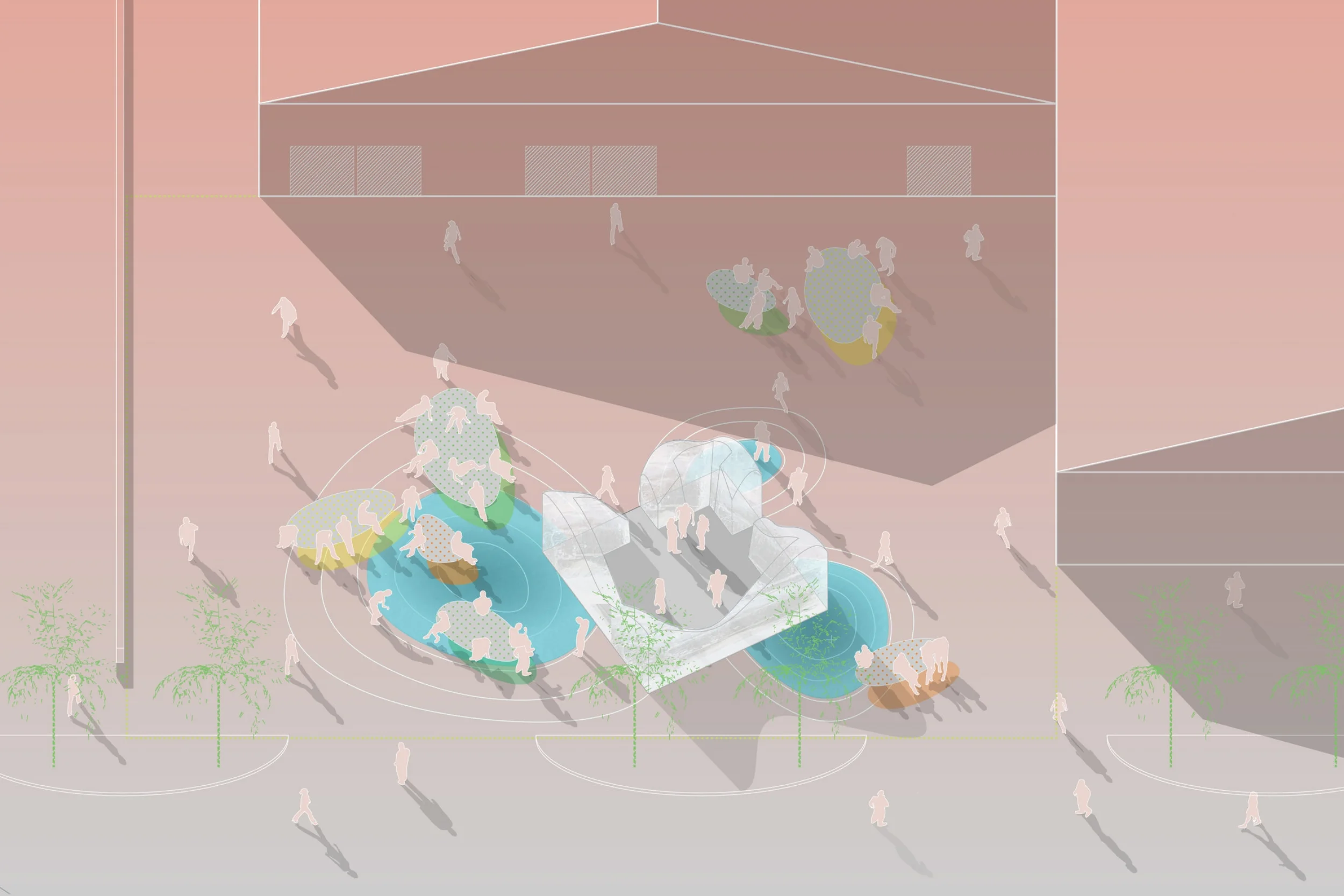 By acknowledging both that cities grow from conflict and that emergent paradigms are revealed by challenging the status quo, the site is activated via a participatory process that places landscape at the center of the conflict. We provide only techniques and materials, and the public chooses how and where to deploy vegetation, proliferating the city in a form that does not rely on a preconceived planting scheme. The contradiction of planned landscape is challenged by the emergent possibilities of public agency in the urban environment.